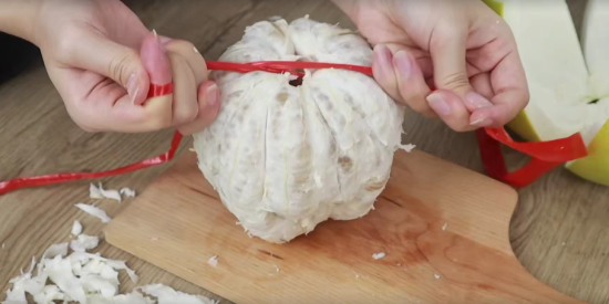 怎么剥柚子皮?只需一根绳子小女生也能轻松剥开,太棒了