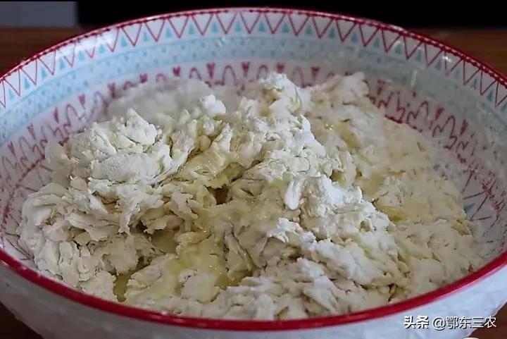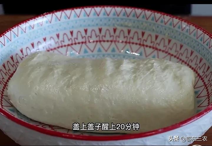 随后用手翻压和面团,面团和好以后用保鲜袋装入内面,静止放置,让面团自然醒动30分钟。当面团醒发以后,倒出来在案板上,又重新碾压几遍,直至面团有弹性为止。