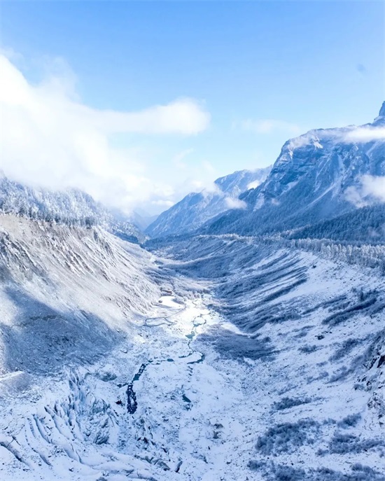 褪去秋日的彩色朦胧,冬天的海螺沟,只能用纯净来形容。