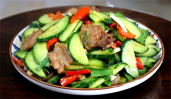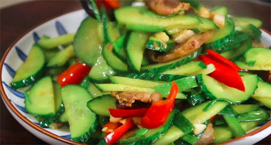 2.这道菜黄瓜保持爽脆的前提是要注意放入黄瓜的顺序,先将肉炒入味,最后放入黄瓜快速大火翻炒,这样能保证里面的水分不流失,吃起来更加的鲜嫩爽口。