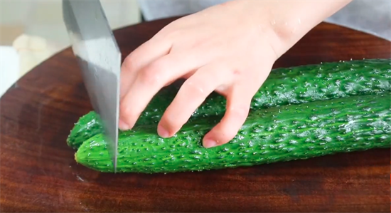 1.黄瓜为了保证口感,我们不去皮,但一定要清洗干净。