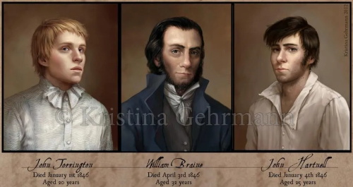 根据比基岛挖掘出的三名船员的遗骸进行的长相复原,最左侧的就是“幽冥”号的轮机长约翰托灵顿,殁年20岁(遗体照片太吓人了就不放了)