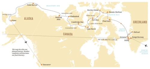 地理大发现时代的最后荣誉之一:开拓西北航线(图中应该是阿蒙森最后的航行路线)