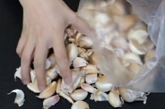 挑选一些新鲜的大蒜,并且将大蒜掰成一瓣一瓣的,从中把已经变质的、长虫的大蒜去除。