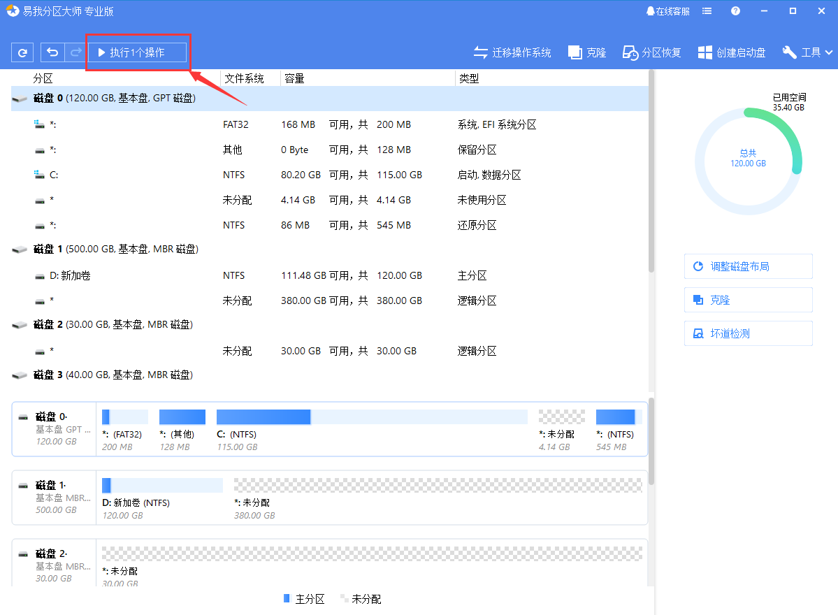 确定要执行操作时,点击软件左上角的待执行操作列表,选择“应用”以执行该项操作。